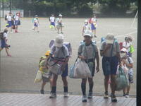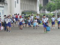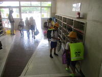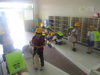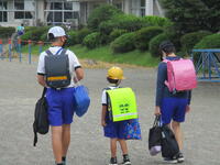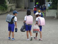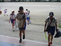 東っ子たちは週明けの今日も、元気にあいさつしながら登校してきました。国旗、市旗、校旗を掲揚している東っ子たちもいます。