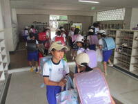 真岡東小学校の教室や図書室には「七夕飾り」が飾られています。