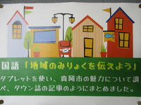 5年2組の廊下には、「地域のみりょくを伝えよう」というタイトルで、東っ子たちが国語の授業でタブレットを使って制作した作品が飾られています。