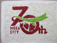 スマイル学級の東っ子たちが、協力して集中しながらていねいに作業して作り上げました。真岡市の市制70周年記念のシンボルマークや栃木県や真岡市のキャラクターです。