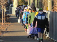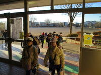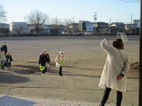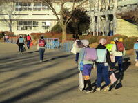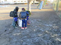 校庭の東門の近くには霜柱が立っていて、霜柱を踏んでいる東っ子もいました。