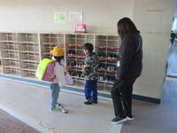 真岡東小学校では今日も学校周辺や昇降口、教室など、いろいろな場所で先生方が東っ子たちの登校を見守ったり、東っ子たちを出迎えたりしています。