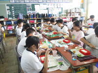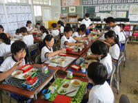 6年生の東っ子たちは、「今日の給食は特別おいしそうです!」「リクエスト給食がおいしーです!」などと言いながら、今日もおかわりして給食をとてもおいしそうに食べていました。