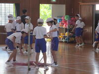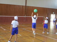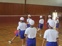 今日は"キャッチバレーボール"をしていました。東っ子たちは準備運動をした後で、協力してポールやネットを準備して、一生懸命にそして楽しそうに体を動かしていました。