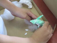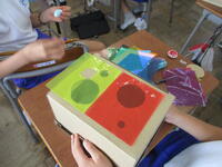 「箱の中にお気に入りの世界をつくることができる」というめあてで、5年生の東っ子たちは一人一人が想像力を働かせながら、集中して楽しそうに作品制作に取り組んでいました。