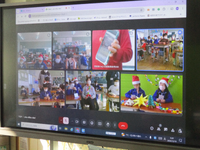 今回はスマイル学級の各教室をリモートでつないでの実施となりました。スマイル学級の東っ子たちは、とても楽しそうな笑顔で「お楽しみ会」の時間を過ごしていました。