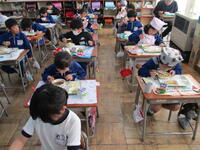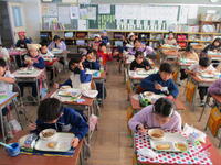 2年生の東っ子たちは、「ラーメンすきです!」「みそラーメンがすきでーす!」などと言いながら、今日の給食もとてもおいしそうに食べていました。