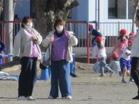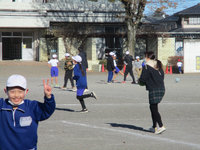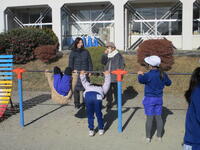 先生方も東っ子たちと一緒に外に出て遊んでいたり、東っ子たちの活動を見守ったりしています。今日は「ハッピータイム」なので、「東っ子応援団」の皆様にも学校に来ていただいて、東っ子たちの活動の見守りをしていただいています。