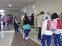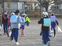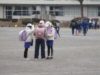 それぞれの班で先生からのお話を聞いた後で、「気を付けて帰りましょう!さようなら!」、「さようなら!」と大きな声であいさつをして、登下校班ごとに下校して行きました。