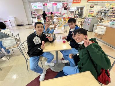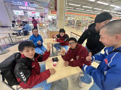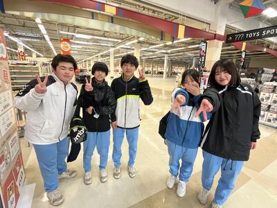 明日の野外炊飯に向けて、各班の班長、副班長が協力をして、たくさん買い込みました!