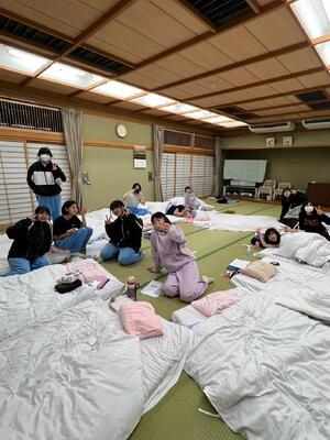 布団も敷き終わり、自由時間になりました。お昼休憩まで各自の時間です。