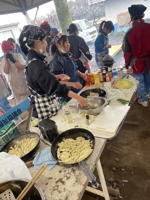 今回はバイキング形式で、焼きおにぎりやメロンパン、焼きそば、野菜サラダにフルーツなど盛り沢山でした!