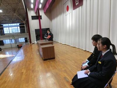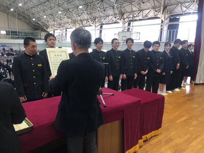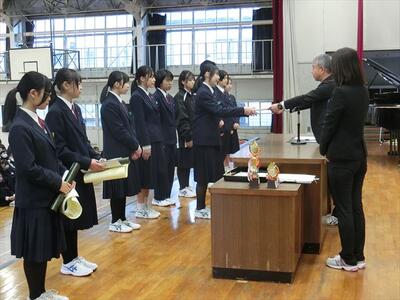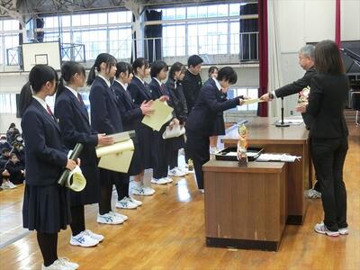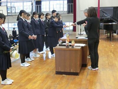 真岡中学校は、3年生9名、2年生7名が入選となり、賞状と記念品の授与がありました。