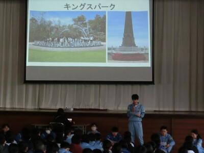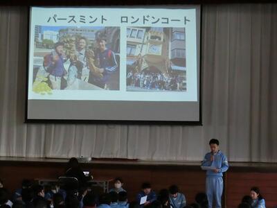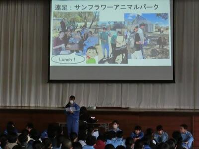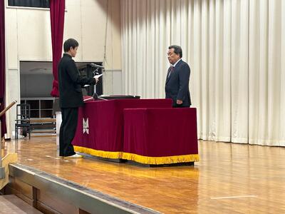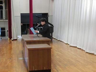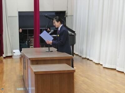 校長先生のお話の後、各学年の代表が合唱や学校祭など思い出深い2学期の振り返りを発表しました。