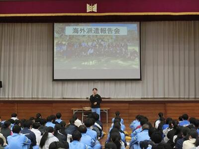 只今、来年度の生徒会本部役員を選ぶ選挙演説会が行われています。