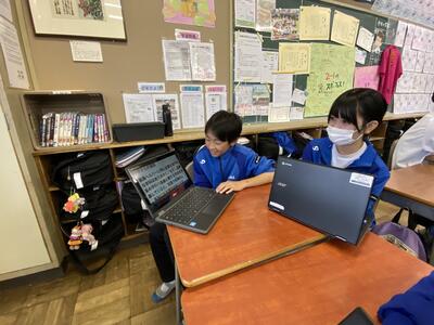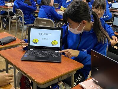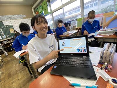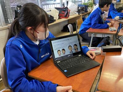 総合的な学習の時間では、マイ・チャレンジ体験活動の準備として職業調べをしてクラス内発表会を行いました。