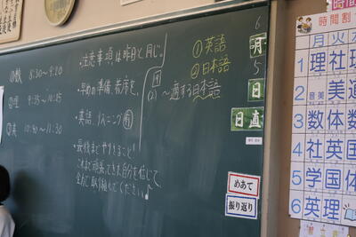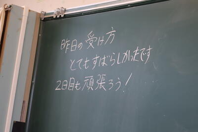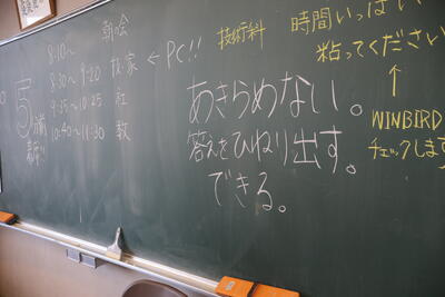 黒板には、テストの諸注意の他に「これまで頑張ってきた自分を信じて全力で取り組んでください。」や「あきらめない。」などの担任の先生からのメッセージが添えられていました。