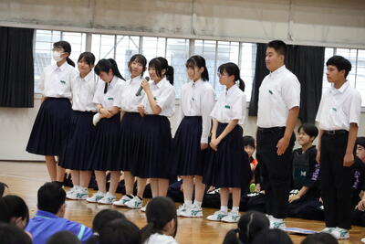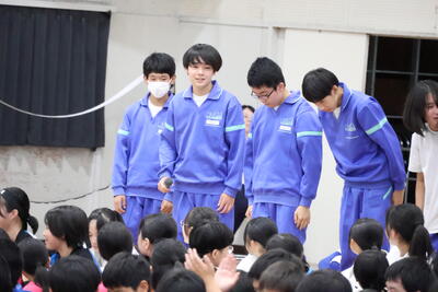 全校生徒の前に並んだ姿に、責任と強さ、学校代表としての誇りを感じました。
