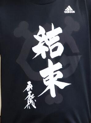 校長先生のTシャツには、「結束」の文字が大きく書かれていました。