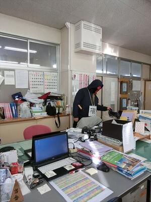 扇風機で換気を行い、半袖半ズボンに着替え、熱中症にならないように配慮しながらの開催でした。