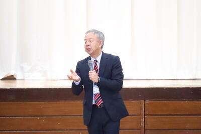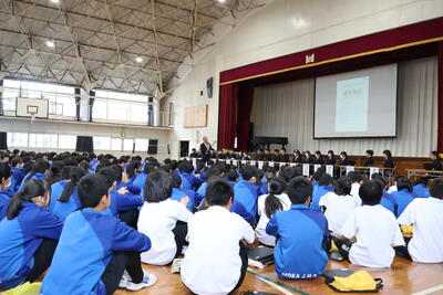 校長講話では、創立80周年を間近に控え、歌い継がれてきた校歌の歌詞にある「花ひらく」「燈はともる」「幸多し」の中に込められたメッセージについてのお話を伺いました。