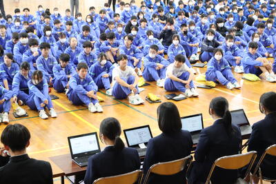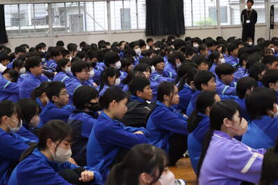 (真剣に話を聞く生徒たち)