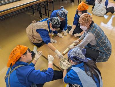 御輿作りと学級旗