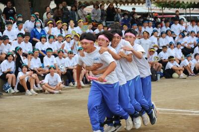 2年生の背渡りは、走者を中心に、まるで一つの生き物のように有機的に動き、ゴールを目指します。