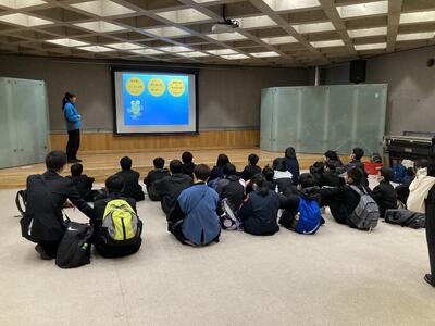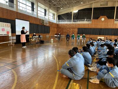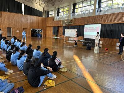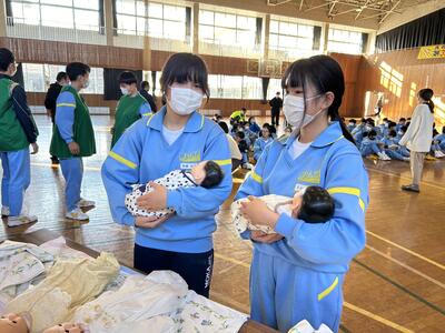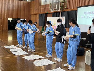 助産師さん、保健師さんの講話や妊婦体験、ベビー抱っこ体験など、貴重な機会に生徒たちも聞き入っていました。