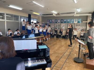 先生方の研修会が開かれました。特設合唱部が協力しました。