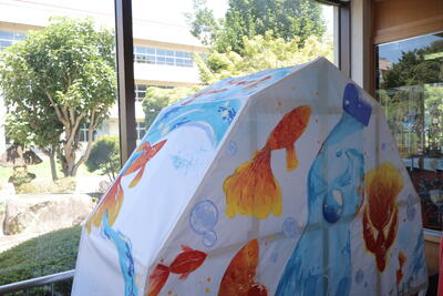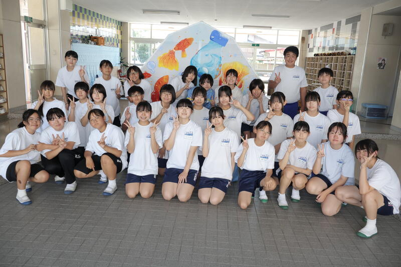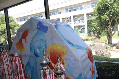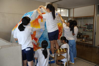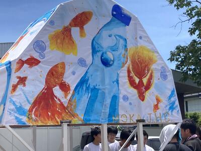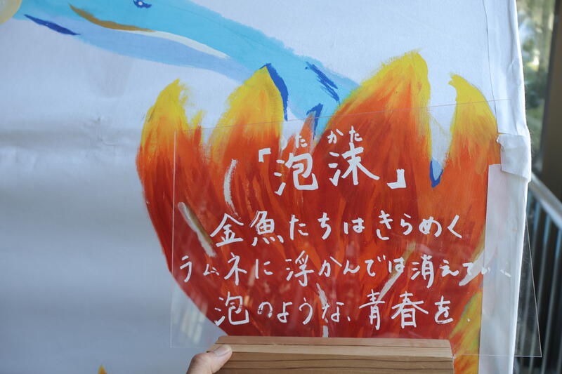 作品タイトルは『泡沫』(うたかた) ↓こちらと御輿の学校名は、3年生の林さんが書きました。