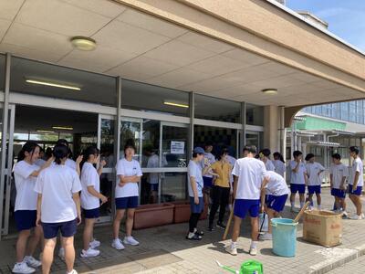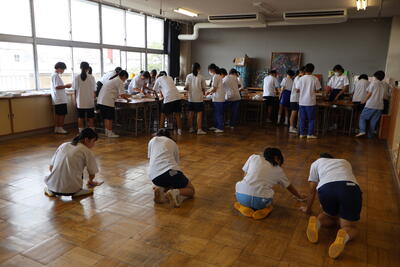 お御輿の制作に使っていた第一美術室を、全員で清掃しました。