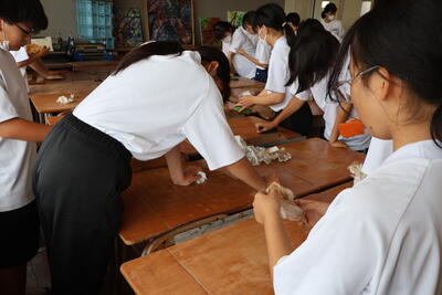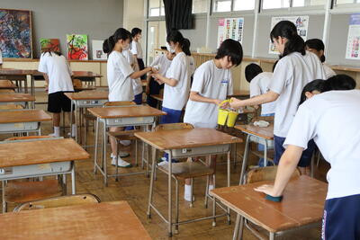 美術室の長い歴史の中で机についてしまった絵の具もできる限り落として、「使う前より綺麗にして返そう!(真中の基本)」を合言葉に頑張りました。