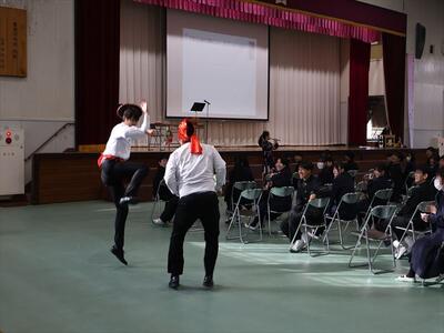 保健体育の授業でダンス発表会です。保護者の方々も来校してくれます。