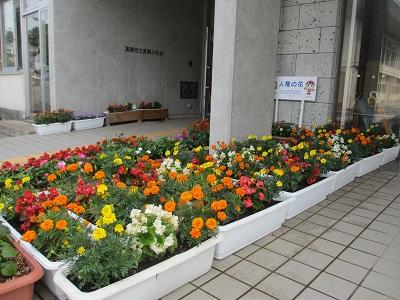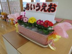 | ○「あ」の花は、「あいさつ」の「あ」です。お家の人や学校の先生、友達や近所の方々に、元気にあいさつをしましょう。 ○「い」の花は、「いっしょうけんめい」の「い」です。小学校では、国語や算数などいろいろな勉強をします。一生懸命がんばって、力を伸ばしていきましょう。 ○「う」の花は、「うんどう」の「う」です。たくさん運動をして、体を鍛えましょう。 ○「え」の花は、「えがお」の「え」です。笑顔で過ごすためには、安全が大切です。車に気を付けて、交通事故には、絶対に遭わないようにしてください。 ○最後の「お」の花は、「おもいやり」の「お」です。友達に優しくして、たくさんの友達をつくってください。 |