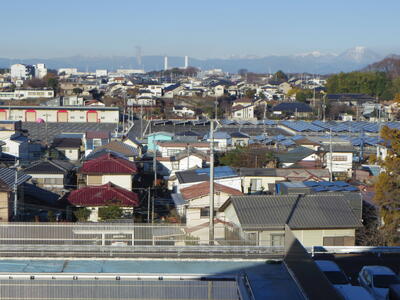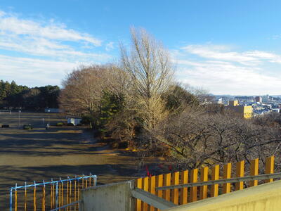 真岡小3階からの眺めです。冬は空気が澄んでいて、遠くの山々がくっきりと見えます。