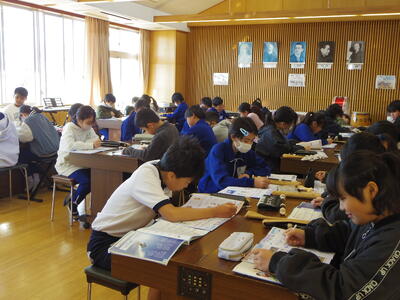 自分の選んだ場面の発表です。前半後半に分かれ、クラスの枠を越えて発表を聞いていました。選んだ理由が人それぞれで、選んだ理由と場面のお話としっかり発表できていました。