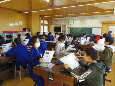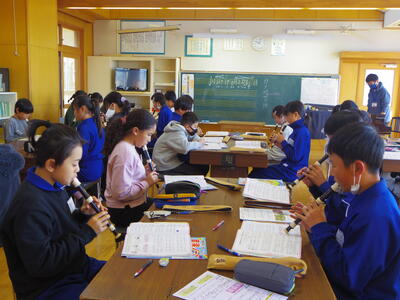 写真は、1年生。ほかの学年でもボランティアの方が来てくださっています。