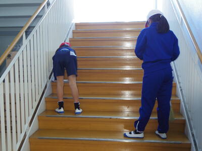 1年生は、6年生に数えてもらったり応援してもらったりして、長い時間走るシャトルランに頑張って挑戦していました。