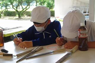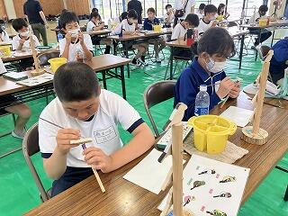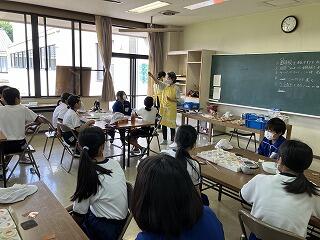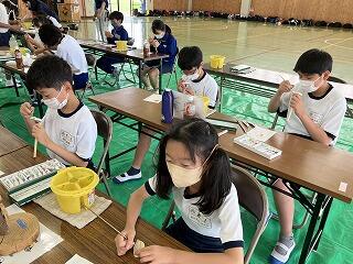 5年生は先週から今週にかけて、家庭科で裁縫の学習が始まりました。日頃触れる機会が少ない、針と糸に児童は戸惑っていましたが、ボランティアの方のサポートのおかげでスムーズに学習を進めることができました。