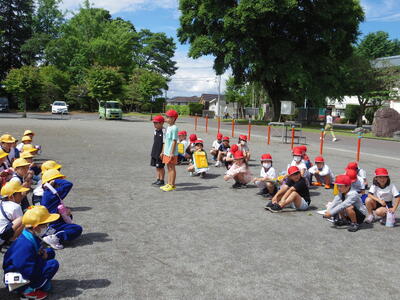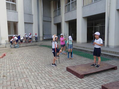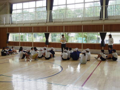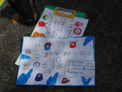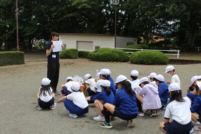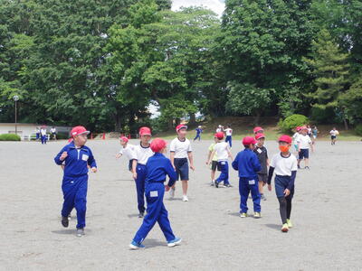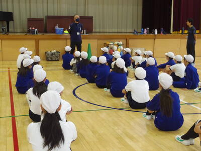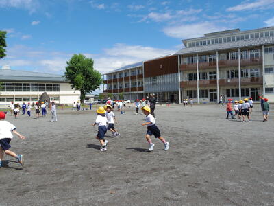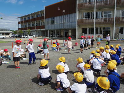 2年生の班長さんの話をよく聞いて、どの班も楽しく遊べました。普通のドッジボールではなく転がしドッジボールにしたり、鬼ごっこでやっさしくタッチするようにしたりと、1年生のことを考えて行動できた2年生でした。