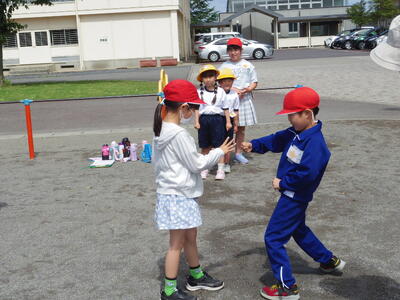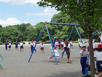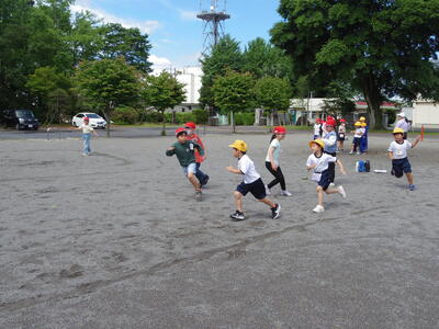 時間いっぱい、外遊びを楽しみました。日差しは強かったですが、さわやかな風が吹き、気持ちよかったです。
