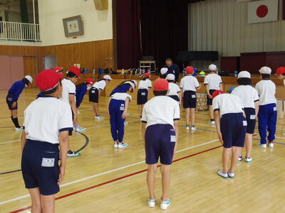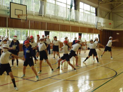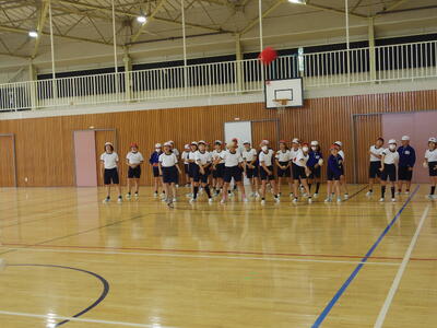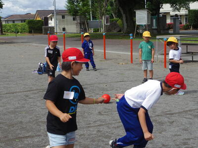 基本の運動の後に、玉投げゲームをし、時間いっぱいたくさん運動できました。