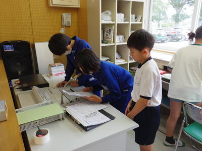 保健委員会 今年から保健委員会の児童も先生方と一緒に、月1回安全点検を行います。