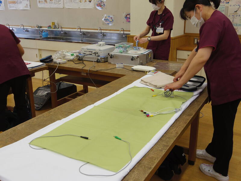検診前の準備の様子 保健衛生事業団の皆様、お世話になりました。