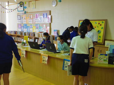 放送委員会 お昼の放送 本日の担当児童が放送準備を行って、本日の給食の献立や給食センターからのお知らせは、給食委員会の児童が担当しています。