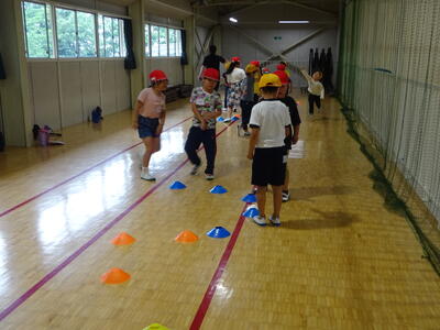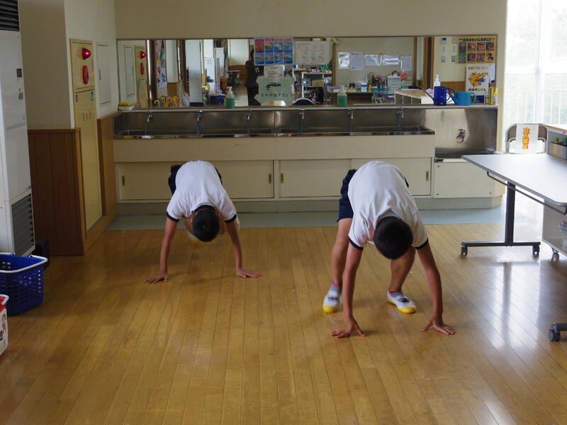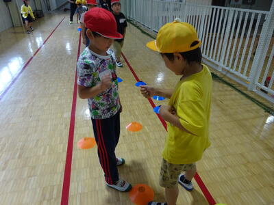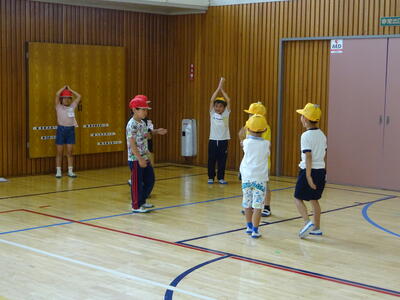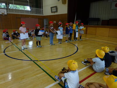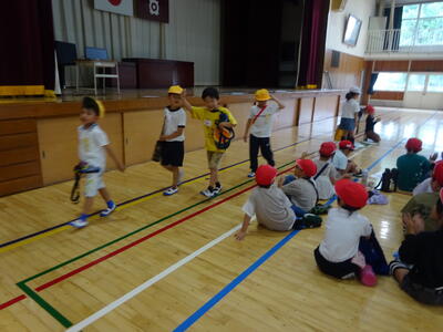 急遽、場所を体育館に変え、班ごとに遊びました。へび鬼・こおり鬼などの鬼ごっこやドッジボール、だるまさんがころんだなどをして、時間いっぱい活動しました。たくさん汗をかいた1年生の顔は、とても満足そうでした。2年生お疲れさまでした。1年生のために楽しい時間をありがとう!