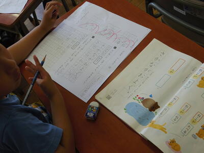 1年生:国語 文作り 絵に合った文が作れたかな。