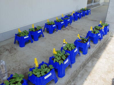 1年生のアサガオ たくさん芽が出て、大きくなっています。