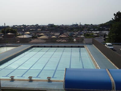 プールの水は少しずつ入れていて、今ここまで溜まりました。